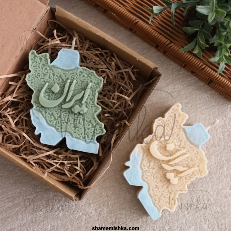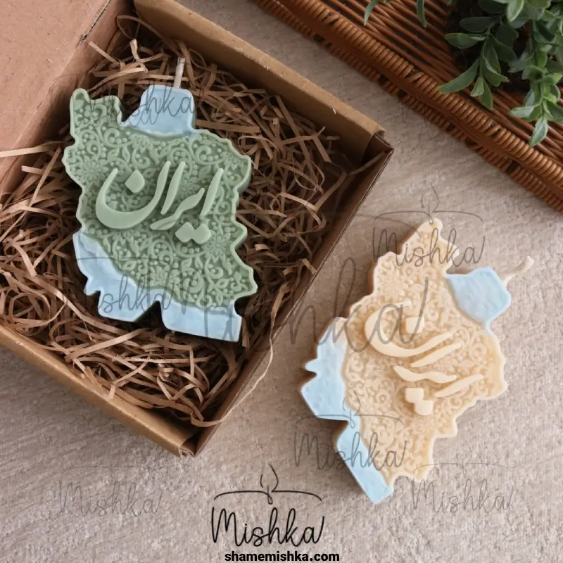 شمع ایران دورنگ از متفاوت ترین شمع های ما از دسته شمع تزئینی هست. این شمع به شکل نقشه ایرانه و اسم ایران روش حک شده و دو تا ترکیب رنگ مختلف سبز آبی و کرم آبی داره. این شمع زیبا و خاص رو میتونید به عنوان دکوری در فضا های مختلف و یا گیفت مناسبتی برای منسبت هایی مثل ۲۲ بهمن و یا دهه فجر استفاده کنید و در مدرسه و یا راهپیمایی ها به دانش آموزا و بقیه بدین.