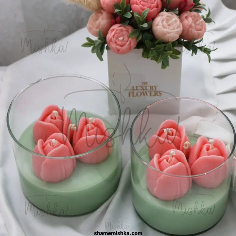 شمع های فانتزی قرار میگیره. این شمع فانتزی فوق العاده زیبا رو که سه تا لاله صورتی خیلی زیبا داره، میتونید به عنوان دکوری و تزئینی در قسمت های مختلف خانه مثل پذیرایی، اتاق، حمام و آشپزخانه استفاده کنید تا حسی خاص و فانتزی به فضای خانه شما بده. لاله های صورتی نماد شادی و اعتماد به نفس هستن و به خلطر همین برای مناسبت های مختلف مثل روز دختر، روز معلم روز زن و یا حتی ولنتاین شات شمع سه لاله صورتی میتونه کادو مناسبی باشه.