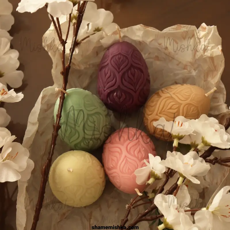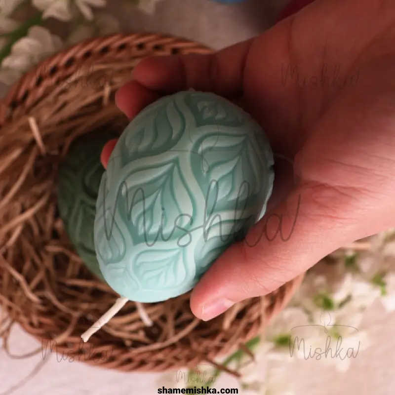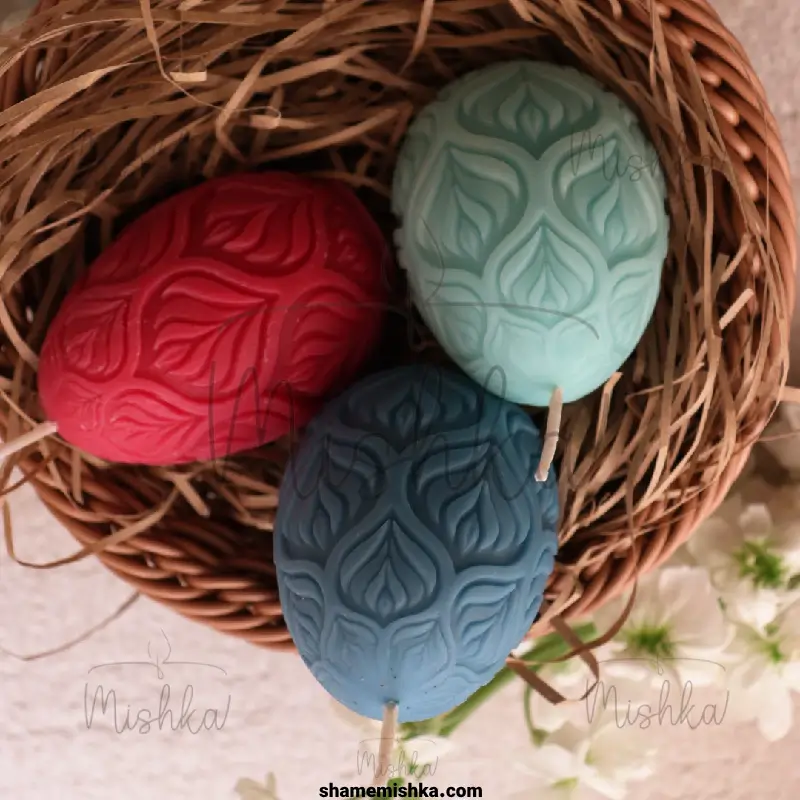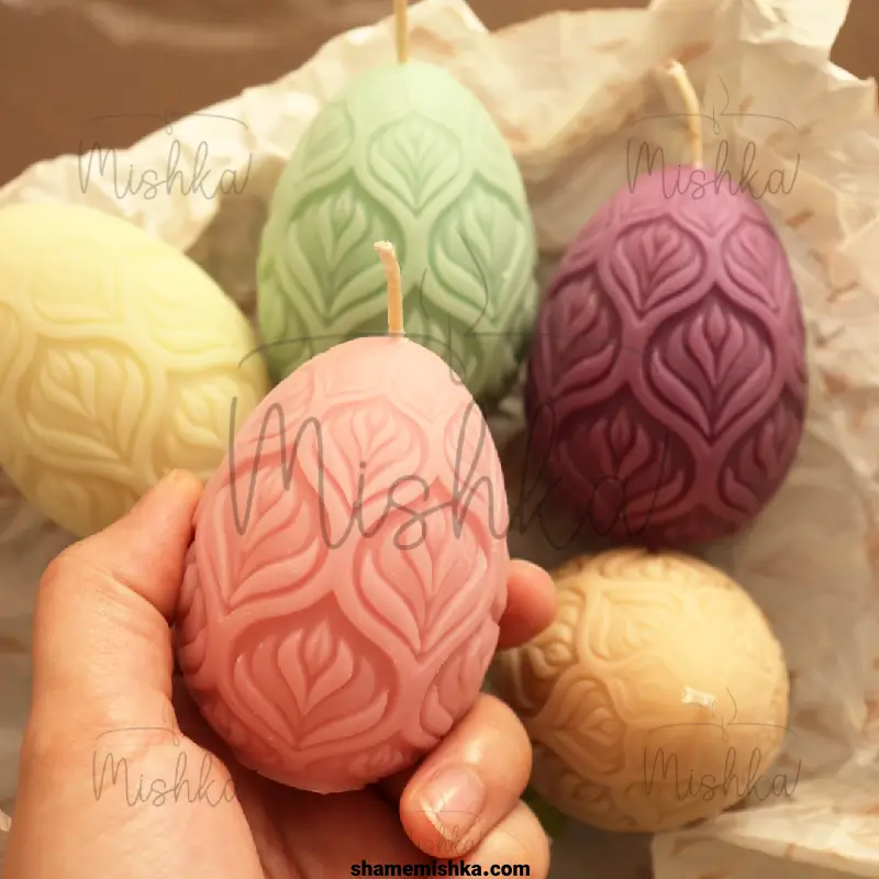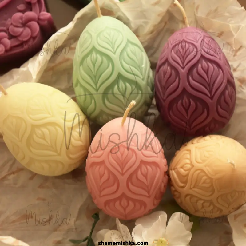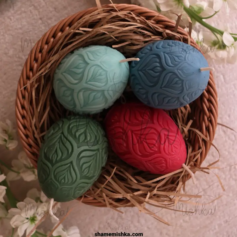 شمع عید نوروز هست. طرح برگی که روی شمع های تخم مرغ کار شده خیلی ظریف و با جزئیاته و نزدیک به ده تا رنگ مختلف داره. شما میتونید رنگ دلخواهتون رو به راحتی انتخاب کنید و با سفره هفت سینتون ست کنید و همزمان هم شمع و هم تخم مرغ رو در سفره هفت سینتون داشته باشین و سفره هفت سینتون زیباتر و خاص تر کنید.حتی میتونیذد این شمع های تخم مرغی رو به عنوان عیدی به دیگران هدیه بدین.